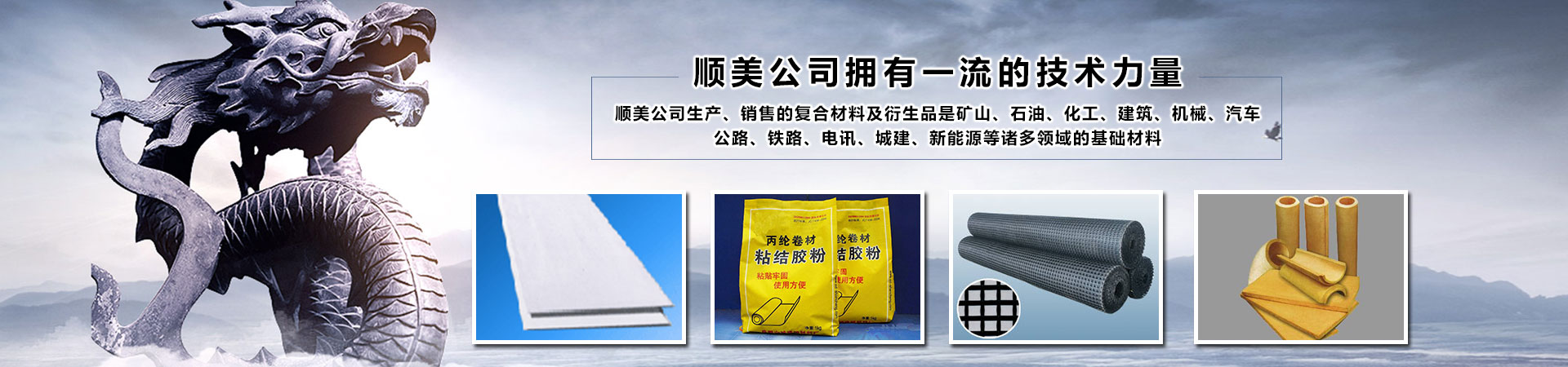 新疆順美新材料有限公司,是成都順美國(guó)際貿(mào)易有限公司駐新疆的分公司。順美國(guó)際貿(mào)易有限公司(以下簡(jiǎn)稱順美公司)成都總部成立于1998年,分公司成立于2008年。是一家科技型研發(fā)、生產(chǎn)及國(guó)內(nèi)國(guó)際貿(mào)易型企業(yè)。公司主要以研發(fā)、生產(chǎn)、銷售各種新材料、化工、建材、防水、防腐、防火、保溫材料、土工材料、橋梁加固材料及國(guó)際國(guó)內(nèi)貿(mào)易為主。公司下屬員工二百余人,并擁有一支具有高素質(zhì)從事新材料、化工、建材及國(guó)際貿(mào)易數(shù)十年經(jīng)驗(yàn)的研發(fā)、生產(chǎn)和銷售團(tuán)隊(duì)!順美公司擁有好的技術(shù)力量,嚴(yán)格的質(zhì)量檢驗(yàn)標(biāo)準(zhǔn)和先進(jìn)的生產(chǎn)設(shè)備,實(shí)行科學(xué)化的管理,產(chǎn)品擁有自主知識(shí)產(chǎn)權(quán),涵蓋多項(xiàng)國(guó)家專利,并嚴(yán)格按照標(biāo)準(zhǔn)進(jìn)行生產(chǎn)、加工和銷售。順美公司生產(chǎn)、銷售的復(fù)合材料及衍生品是礦山、石油、化工、建筑、機(jī)械、汽車、公路、鐵路、電訊、城建、新能源等諸多領(lǐng)域的基礎(chǔ)材料。順美公司經(jīng)過多年的累積和發(fā)展,現(xiàn)已建立完善的研發(fā)、生產(chǎn)、銷售一條龍服務(wù)體系,在產(chǎn)業(yè)鏈銜接、技術(shù)、服務(wù)、物流、人才聚集等方面成效顯著...